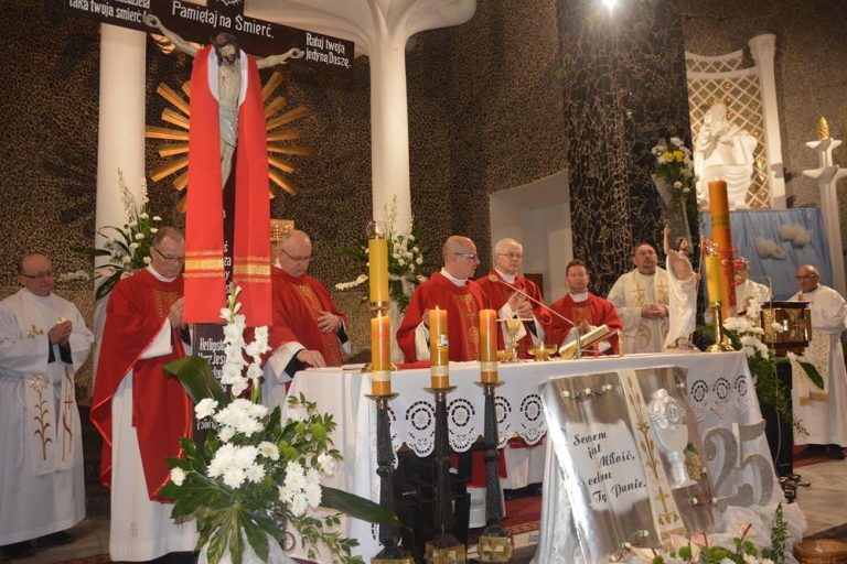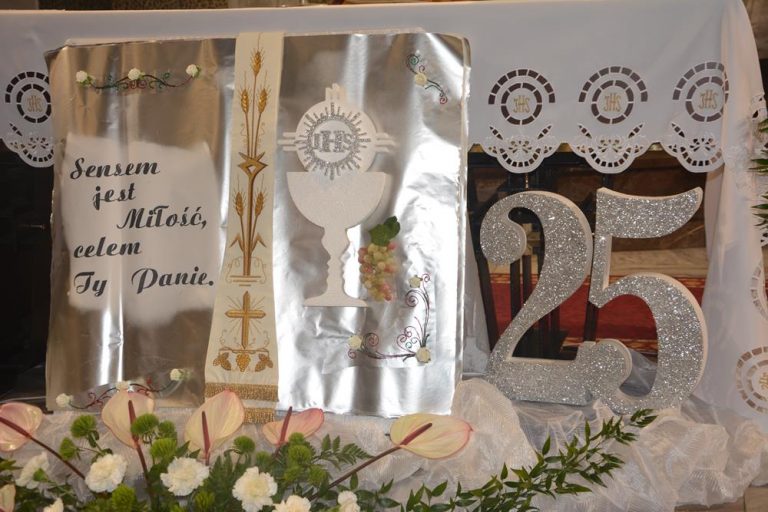 Dnia 14 maja br. ks. Proboszcz Mirosław Pelc obchodził jubileusz 25 lat święceń kapłańskich, które otrzymał 14 maja 1994 roku w Katowicach. Z tej okazji odbyła się uroczysta msza św. o godz. 18:00. Przy ołtarzu, oprócz księży naszej parafii, towarzyszyli księża znajomi i rocznikowi ks. Pelca. Po mszy życzenia i gratulacje odebrał ks. Proboszcz od bardzo wielu delegacji grup parafialnych, ministrantów i szkół. Otrzymał tez ks. Jubilat wiele życzeń wysłanych drogą elektroniczną.